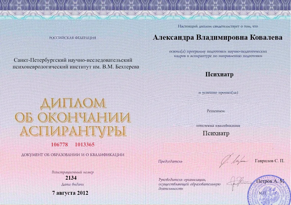 Должность: Психиатр, врач-общей практики, кандидат наук